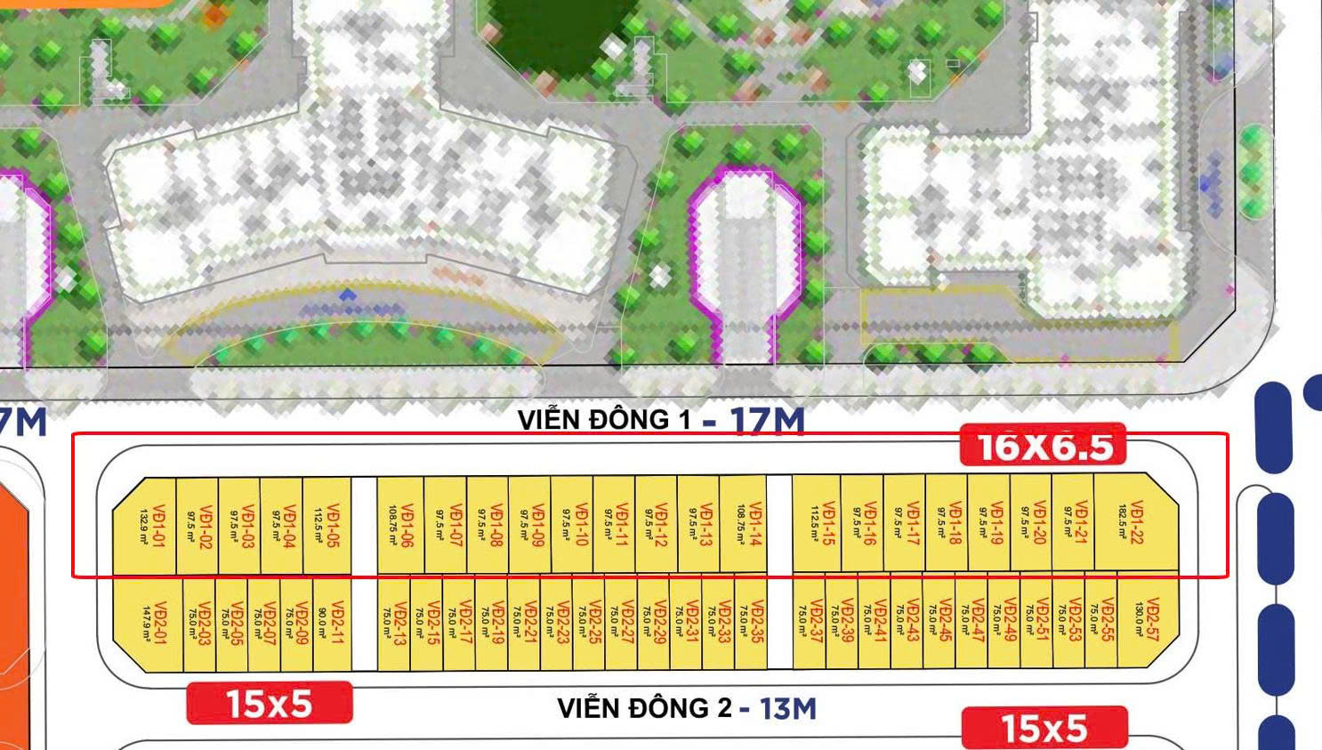 Bán biệt thự căn VĐ1-xx Vinhomes Global Gate, Đối diện The Cosmopolitan - Diện tích: 97.5m² - Giá: 45,5 tỷ (bao phí) - Hướng ban công: Tây Bắc - Mặt tiền: 6,5m, đường trước rộng 17m - Pháp lý: Hợp đồng mua bán - Khu vực yên tĩnh, an ninh tốt