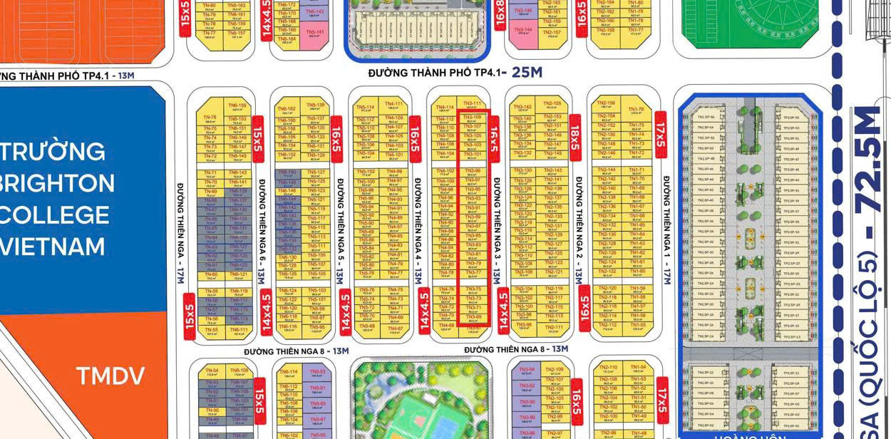 - - Kết nối nhanh ra trục TP4.1 (25m) và Quốc lộ 5 (72,5m)