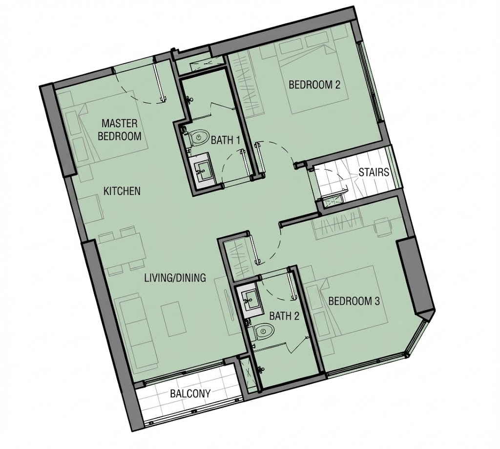 Ban công: 2 hướng Tây Bắc và Tây Nam - thoáng gió, tầm nhìn rộng.
