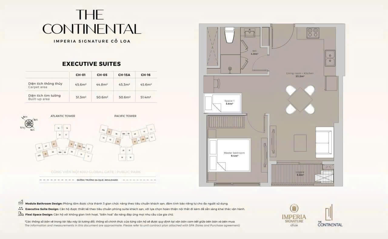 Bán suất nước ngoài 1 ngủ+ tòa Y4 Atlantic tầng cao Đông bắc view thấp tầng - DT: 46.8m2 Vinhomes Cổ Loa 3